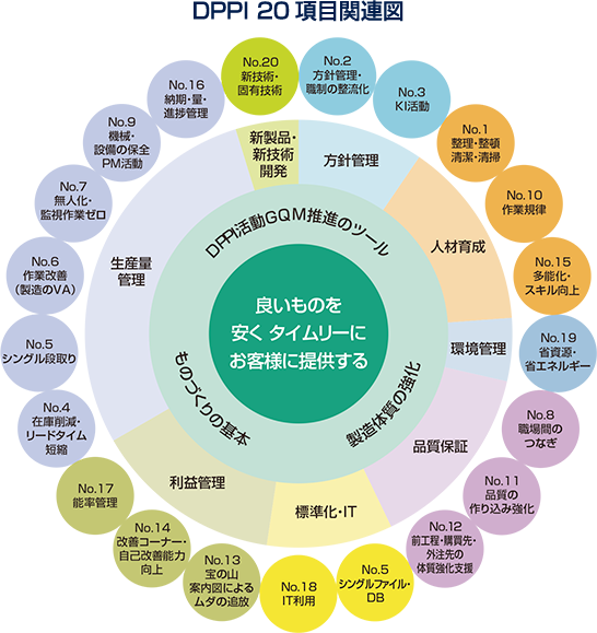 “良いものを安く,早くつくり込む体制の実現”をめざして2001年4月より「DPPI活動」をキックオフし,品質は自分たちでつくり込むとの考えのもと,全員参加で生産力の増強に取り組んでいます。